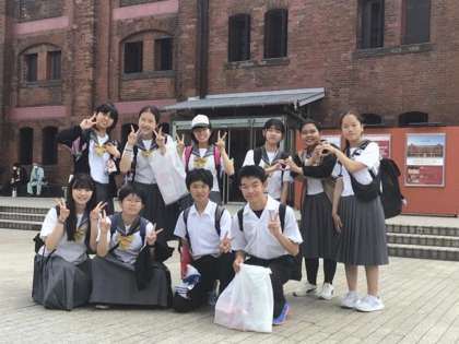 1時前にはほとんどの班が赤レンガ倉庫に到着しているようです。やや雲が多いですが、爽やかな天気です。