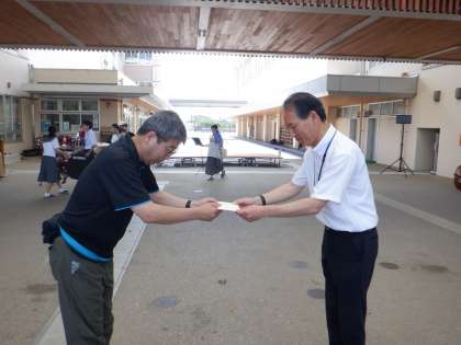 青少年育成会より、先日のボランティア部による梅狩りの収益金より、寄付金をいただきました。