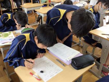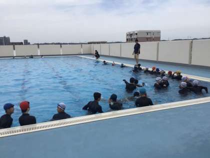 17日(月)、1年生の体育の授業では、水泳の学習を行っていました。初回の授業ということもあり、プールの使用上の注意や楽しみながら水に慣れる活動を行うなどしていました。全員で水流を作り出す活動では大きな流れをみんなで作り出して大変盛り上がっていました。2年生の国語の授業では俳句の学習を行っていました。タブレットでお互いの意見を読み合い、班で1つ紹介する俳句を決めていました。3年生の数学の授業では、平方根の学習を行っていました。画像のクラスは手応えのある応用問題にチャレンジしており、ヒントを出し合いながら正解を導いていました。