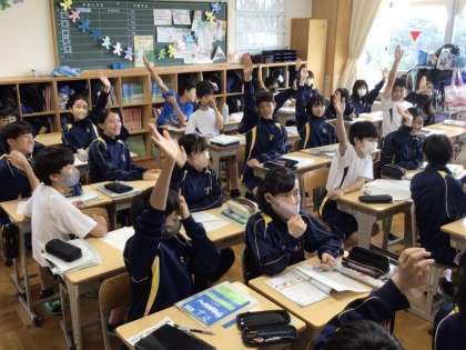 1日(月)、1年生の数学の授業では、文字式の代入の学習を行っていました。例題を元にみんなで確認しながら理解を深め、近くの席同士で説明し合っていました。全体で話し合う場面では、大勢の生徒が元気に挙手をして発言に意欲を示していました。英語の授業でも張り切って挙手をしている様子が見られました。2年生の体育の授業では、保健の学習を行っていました。今回は外傷の応急手当てについて、様々なけがについて原因や症状を学んでいました。部活動をはじめ様々なスポーツに親しんでいる生徒が大勢いるため、頷きながら熱心に説明を聞いている姿が見られました。3年生の社会の授業では、公民の学習を行っていました。今回は人権について取り上げ、資料を読んで、差別かどうかを理由を挙げながら考えていました。身近な事例ばかりでしたので、日常生活の中でも考えて行動できるとよいと思います。