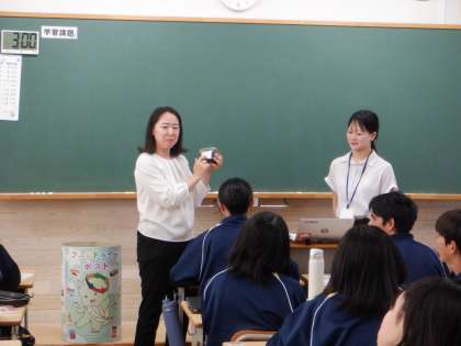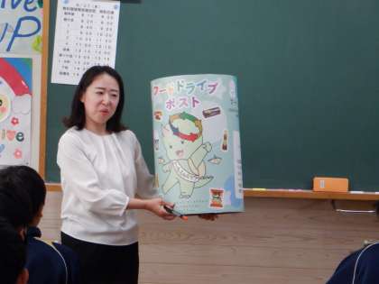 本日1年の学級に、バロー浄水店の職員さんに来ていただき、フードロスやフードドライブについて教えていただきました。