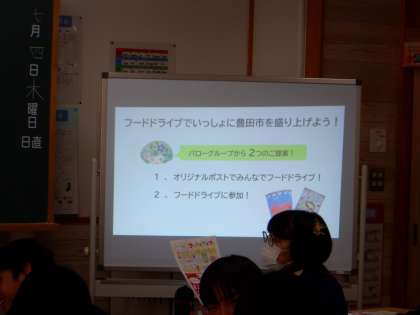 また、フードドライブとして、家に眠っている食品で、常温保存ができ、賞味期限が1か月以上ある未開封の缶詰やレトルト食品を、必要としている方へ届ける活動の推進について学びました。
