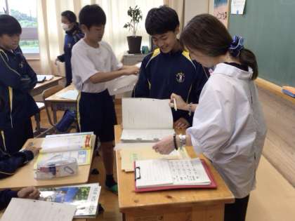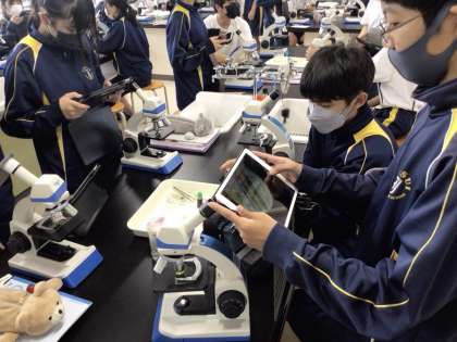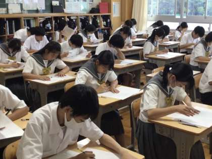 11日(木)、1年生の英語の授業では、英語によるスピーチの学習を行っていました。9月のスピーチに向けてまずは各自が日本語で内容を考えていました。それぞれが考えた日本文について、教科担任の先生に英文に直す際のヒントなどを個別に指導してもらっていました。2年生の理科の授業では、細胞の観察を行っていました。顕微鏡で観察できたものをタブレットで撮影し、画像を拡大して細胞のつくりなどを観察していました。3年生は、第1回学習診断テストに取り組んでいました。公立入試のように5教科を1日で行い、全てマークシート形式で実施していました。進路の貴重な資料の一つとなるため、一生懸命に取り組んでいました。