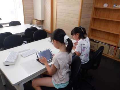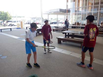 ソフトテニス部では、テニスボールを使った反射神経を鍛えるトレーニングやラケットでボールを打つ練習をしていました。コンピュータ部では、タイピング練習をしていました。