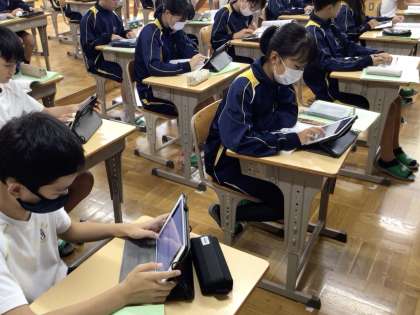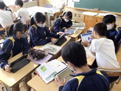 学校生活が再開しました。早速授業も行われましたが、よく集中して取り組んでいました。1年生の音楽の授業では、合唱の学習を行っていました。合唱コンクールで演奏する曲について、歌詞やメロディから何を伝えたいのか等を各自で考え、タブレットを使って学級全体で共有していました。みんなの思いを一つにする大切な活動です。2年生の理科の授業では、植物のからだのはたらきについて学習していました。どのように確かめたら良いかを各自でタブレットにまとめ、グループの仲間と共有しながら話し合っていました。図に表すなど、各自の工夫が見られました。3年生の体育の授業では、バレーボールやバドミントンの学習を行っていました。久しぶりに仲間と一緒に活動できる楽しさを味わいながら取り組んでいました。