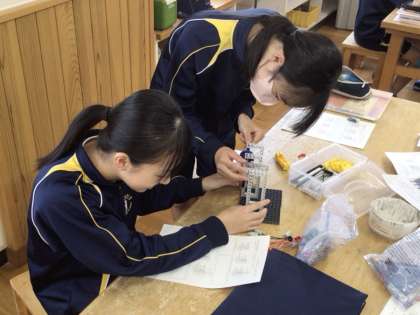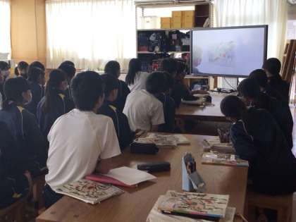 9日(月)、1年生の家庭の授業では、被服の学習を行っていました。衣服の選ぶ上で必要な表示の見方を学び、適切な選択のための知識を得ていました。先生の説明の中にもネット通販での購入とあり、現代でも大切な学習だと感じました。2年生の技術の授業では、歯車機構の学習を行っていました。与えられたセットを用いて、課題に示されたギアシステムを完成させるという内容で、ペアやグループで相談や試行錯誤に取り組み、夢中になって取り組んでいました。粘り強く取り組む良い経験にもなっていました。3年生の美術の授業では、鑑賞の学習を行っていました。教科書に取り上げられている作品や関連したものについて、動画を視聴して作品や作者に関することを学んでいました。日本を代表する美術館の内部や展覧会の様子も視聴し、作品を多角的に鑑賞する大切さを学んでいました。