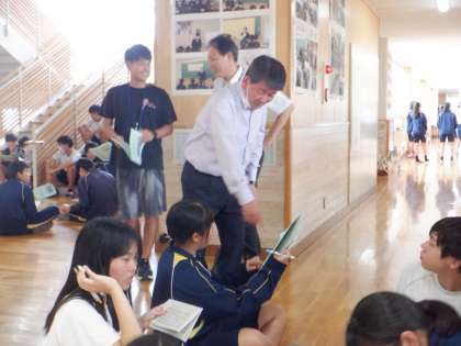 校内を参観される中、合唱コンクールのパート練習の場面では、「何の曲を歌うの?」「大地讃頌は?」「知らない曲が増えたな」などと、気さくに声をかけていただきました。