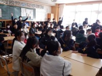 4日(金)、1時間目に2年2組で国語の授業研究が行われました。説明文の学習で、教科書に掲載された教材の文章と似た内容の別の文章を比較しながら、説得力のある文章に必要なことを考える内容でした。グループでそれぞれの文章について視点をもって検証し、その成果を学級全体に説明していました。各班の検証結果を共有後、説得力のある文章について、グループで話し合って最終的にクラス全体で共有しながら課題に迫っていました。グループでの話し合いの時間を多く確保していましたが、足らないぐらい前のめりで活発に議論している姿が見られました。また、グループでの話し合いや全体での発表では、原稿なしで筋道立てた話ができている生徒が多く、本単元の学習が実際の活動にも生かされていることに感心しました。今回の学びをさまざまな学習や他の活動に活かされると感じました。