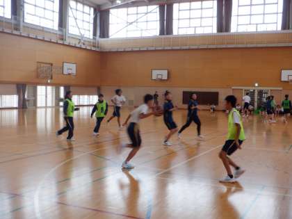 本校で実習を行っている教育実習生が、保健体育科でバスケットボールの授業を行いました。本時は、相手にカットされることなくドリブルするためにはどうしたらよいかについて、練習やミニゲームを通して学びました。