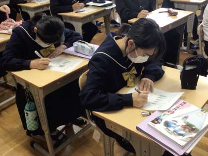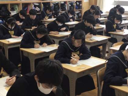 14日(木)、本日から3年生は後期中間テストが始まります。入試前の大切なテストということで、生徒の皆さんの集中力は高く、一生懸命に取り組んでいる姿が見られました。悔いの残らないように最後まで頑張って欲しいと思います。明日と月曜日は1、2年生もテストが行われます。1、2年生も多くの授業で、テストに向けて復習や問題演習に取り組んでいました。