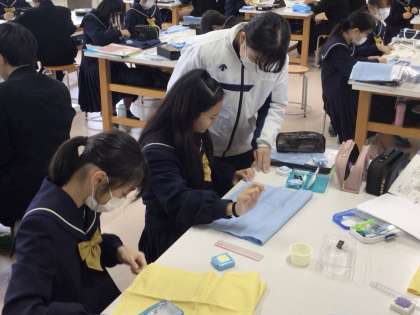 1年生の家庭の授業では、裁縫の学習を行っていました。今日はまつり縫いに挑戦し、各自が一生懸命に縫っていました。難易度が高いため、仲間や先生に教えてもらいながら取り組んだり、学習用タブレットで説明動画を見ながら作業をしたりとそれぞれ工夫をしていました。今後の制作や実生活で役立つと良いと思いました。2年生の理科の授業では、植物の体のつくりについて演習を通して理解を深めていました。入試等のレベルの問題に挑戦し、仲間と教えあったり、先生の解説を聞いたりして確認していました。授業で取組がテストに生かせると良いと思います。