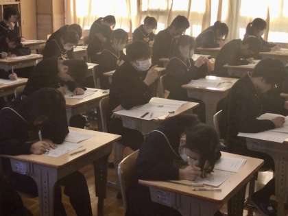 18日(月)、本日は後期中間テスト最終日です。今日も朝から教科書等を手にしながら登校する生徒の姿が見られ、最後までがんばろうという意気込みが感じられました。土日もきっとテスト勉強に取り組んできたと思いますので、それぞれが納得できる取り組みになると良いと思います。