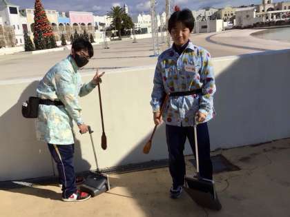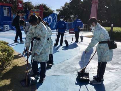 園内の清掃業務を担当しているチームです。テーマパークでよく見かけるスタッフの作業を体験する貴重な機会になりました。