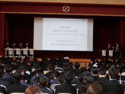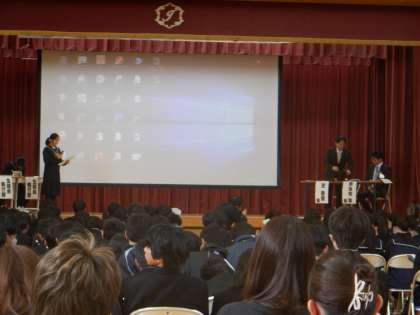 「多くの人に愛される学校を」「地域に開かれた学校を」を目指して開校されたこと、また地域共働型として、学校と地域が連携しながら生徒の成長を見守っていただくことなど、わかりやすくお話しいただきました。