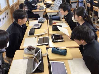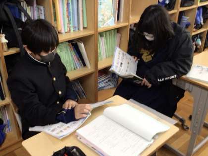 20日(木)、1年生の英語の授業では、読み物資料の学習を行っていました。ペアで役割分担をして本文を読み合ったり、学級全体で順番に大きな声で読み上げたり、繰り返し英文の発音や聞くことに慣れ親しむ活動を行っていました。どの生徒も上手な発音で驚きました。2年生の国語の授業では、ディベートの学習を行っていました。まずはディベートの流れを理解し、簡単なテーマで練習をしていました。鋭い質問をして、相手が降参したり、上手に説明をしてみんなを納得させたりと盛り上がっていました。自分の考えを堂々と話せる技術を身につけることも大切な学びです。本番が楽しみです。3年生の学級の時間では、近所の公園を中心にゴミ拾いに出掛けているクラスがありました。地域に感謝の気持ちを伝えるためにと生徒の皆さんから提案があって実行に移したとのこと。素晴らしい考えだと感心しました。
