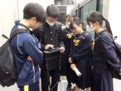 昼食は各自で考えてとっています。中日新聞名古屋本社に訪問したグループは自分たちで新聞を作らせてもらったようです。2組は名古屋大学で活動です。どこを巡ろうかと思案中です。