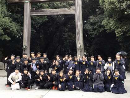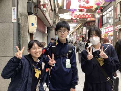 1組は熱田神宮の鳥居の前で記念撮影です。大須観音で活動している生徒は商店街の散策を楽しんでいるようです。