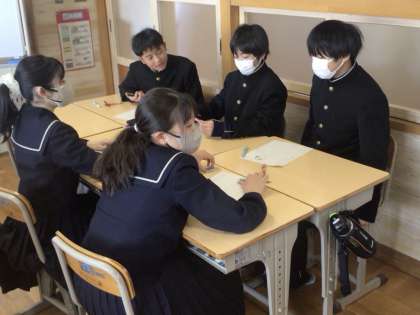 1年生の国語の授業では、今年度の最後の授業ということで、ことわざカルタや言語による伝達ゲームで盛り上がっていました。これまでの学習内容や話し合い活動の成果が現れながら楽しむことができていて、良い雰囲気で1年生の学習を終えることができたようでした。2年生の美術の授業では木彫の学習を行っていました。以前より随分と進んでいることが窺えましたが、まだ先は長そうです。しかしみんな根気よく作業を進めたり、先生に熱心に相談したりと大変集中して取り組んでいました。3年生でも継続するようですので、粘り強く制作を続けてほしいです。