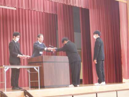 引き続き行われた修了式では、代表生徒が修了証を校長先生から受け取りました。