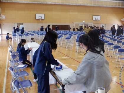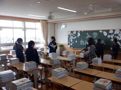 8日(火)、明日の入学式に向けての準備が行われました。新3年生が登校し、新入生のためにそれぞれの担当場所の準備を取り組んでいました。今までは先輩が行ってくれていた行事の準備も、これからは新3年生が中心となって取り組んでいきます。その第一歩としての本日。それぞれが自分の役割に対し責任をもって取り組む姿は、とても頼もしく見えました。明日からの新学期が楽しみです。
