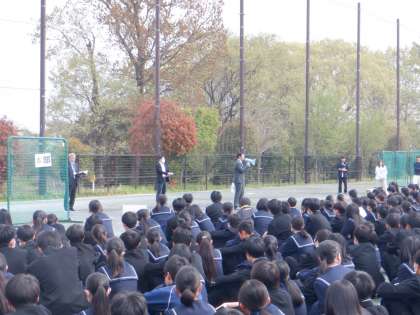 新しい教室になり避難経路も変わり、教室で安全に避難するために気をつけることを確認してからの避難となりました。校長先生からは「落ち着いて正しい情報を得ること」「自分の命は自分で守ること」「避難経路を確認すること」についてお話がありました。