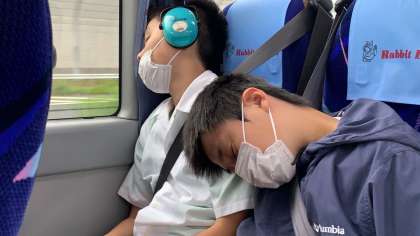 バスレクはカラオケで盛り上がったり、映画を見たり。少しお疲れの様子もありますが。