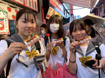 浅草で、短い時間にも関わらず、上手に楽しんでいました。人形焼やおみくじ、おこしなど、食べたり、家族へのお土産を買ったりしていました。