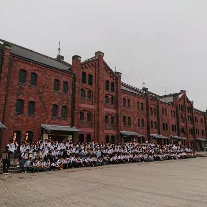 横浜赤レンガ倉庫です。 学年写真を撮影しました。雨はあがりました。