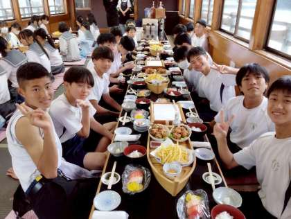 雨のため一部、予定変更をしましたが、大きな事故やけがなく今日を終えられそうです。晩御飯を食べ過ぎて気持ち悪い生徒がいますが、心配はなさそうです。発熱者もいません。今晩はゆっくり寝て、明日に備えたいと思います。