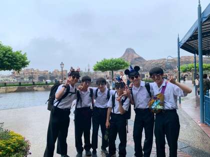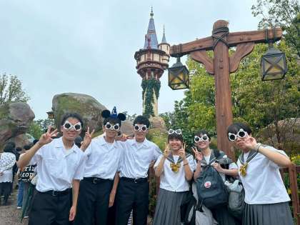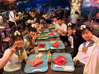 そろそろお昼の時間です。本部に笑顔で集まる3年生は元気です。
