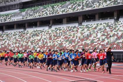 国立競技場では生徒の熱中する様子に競技場の係の方も感動されていました。限られた時間に素晴らしいパフォーマンスを披露できました。