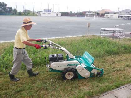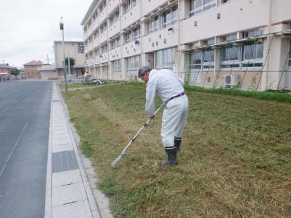 23日(月)JVGの方により、校内の環境整備を行っていただきました。主に、運動場側に面した花壇の除草でした。大型の草刈り機を準備していただき、一気に刈り取りをしていきました。