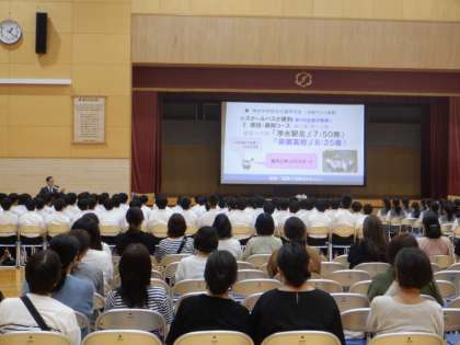 また、過去どれくらいの浄水中卒業生が通っているかや、進学や就職に向けてのコース説明など、3年生にとって関心の高い話題ばかりでした。生徒たちは、メモをとったり資料に見入ったりして、内容を聞き漏らさないようにしたいという真剣さを感じました。