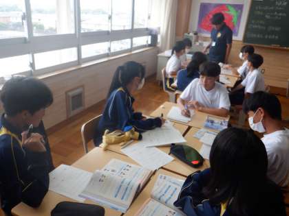 家庭科の授業では、きゅうりの輪切りや乱切りのテストが行われていました。家で練習してきた生徒もいるのでしょう、速く薄くきれいにきゅうりが切られていました。ぜひ、家族のために腕を振るってもらいたいです。また、道徳の時間には「多様性」に関する話し合いをしていました。自分とは違う友達の一面について、認めたり受け入れることができたりすることで、お互いの信頼関係につながっていく。生徒たちはそれぞれの考えをグループの仲間と交流しながら、学びを深めていました。