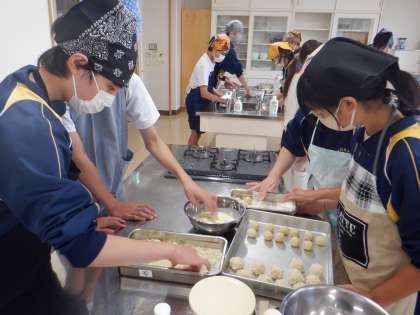 内藤さんから丁寧なレクチャーを受けてスタートしましたが、途中、手のひらが卵とパン粉まみれになる場面もありました。メンバーで協力して楽しく準備していました。今後メニューが増えていくとのこと。今から楽しみです。