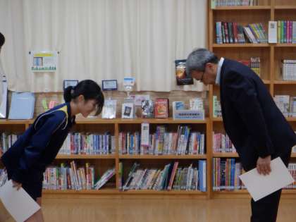 10日(金)後期生徒会役員認証式と前期終業式が行われました。後期の生徒会委員長をはじめ、各役員の生徒は校長先生から認証状をいただきました。指先までピンと伸ばしたすばらしい姿勢から、「頑張りたい!」という意気込みを感じました。