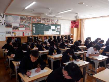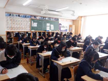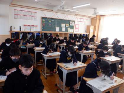 17日(月)後期中間テストの1日目がありました。生徒たちは緊張感をもって問題に取り組んでいました。