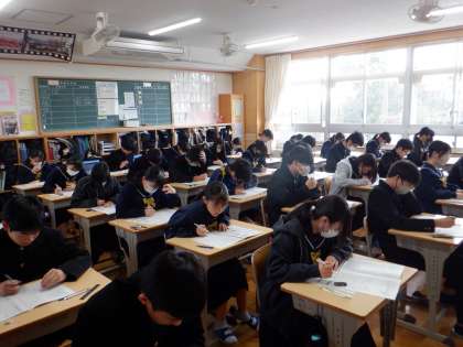 一問ずつ確実に解き進めている生徒や、全体を見て解きやすい問題から進めていく生徒など取り組み方は様々ですが、今までの成果を試していました。自身の力を出し切れたことを願っています。