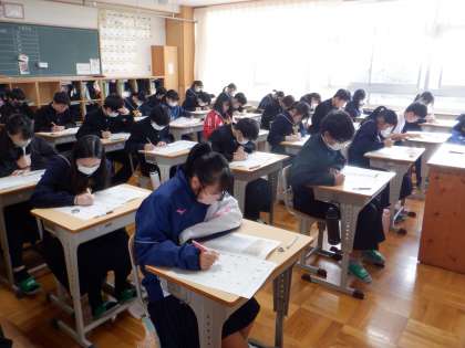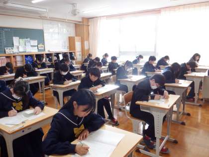 18日(火)後期中間テストの2日目がありました。昨日に引き続き、生徒たちは真剣に問題に向き合っていました。