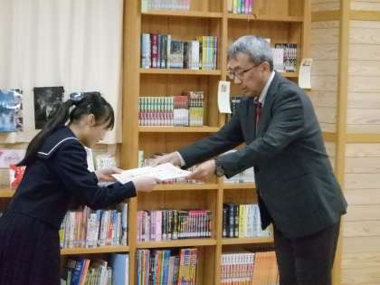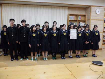 25日(火)各部活動の夏の大会以降の表彰や個人で認められた賞について校長先生に表彰していただきました。それぞれの大会で頑張ってきた証を表彰していただき、皆で拍手を贈りました。オンラインではありましたが、カメラの前の生徒の姿はとても誇らしげでした。これからの活動につなげてほしいです。