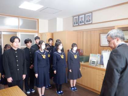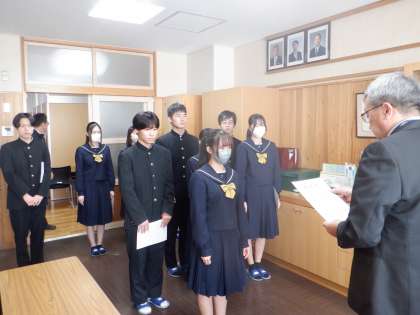 26日(水)各委員会委員長の認証式があり、校長先生から認証状をいただきました。校長先生からは、それぞれの立場から責任ある行動をしてほしいこと、3年生は残りの学校生活の中で、自分の役割を果たしてほしいことなどのお話がありました。一人一人認証状を受け取り、真剣な表情からこれからの意気込みを感じました。