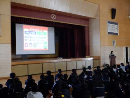4日(木)全校生徒を対象に、ネットモラル集会が行われました。講師に、愛知県みんなのネットモラル塾 羽根 由美様をお招きして、ネットの危険性や使用のルールについて、分かりやすく教えていただきました。