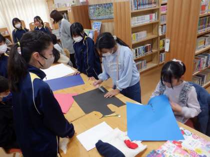 ボランティア部では、1月の掲示を制作していました。小学生が下絵を考える際に、デザインの大きさや全体のバランスなどをわかりやすく教えていました。絵が得意な小学生が多かったようで、和気あいあいとした雰囲気での活動となりました。