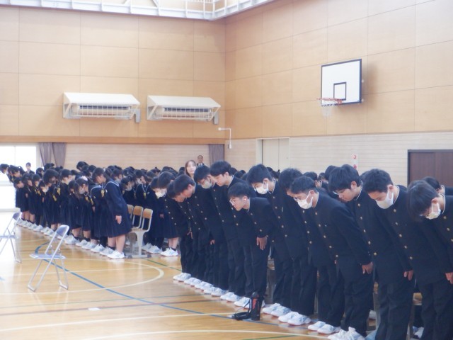 「3年生のために、最高の卒業式を作り上げることが最大の目的であること」について話があり、立ち姿や礼の仕方、座った姿勢など一つ一つを確認しながら進めていました。これから、送辞や送別の歌などの練習をしていきます。
