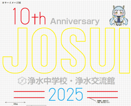 10周年記念キャラクターすいりゅーちゃんの後ろに「JOSUMI」が出現すること...