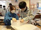 有名な「変なホテル」で体験したチームは宿泊室のベッドメイキングを行いました。従...