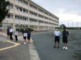 後期生徒会の役員を決める選挙に立候補した子どもたちが、選挙活動として、朝の登校時...