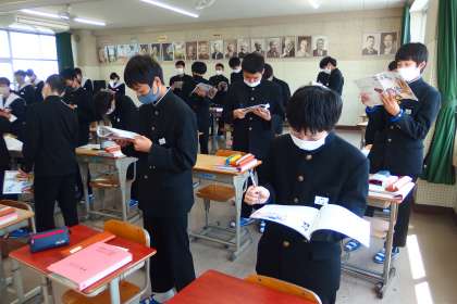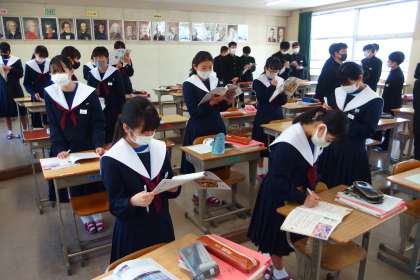 3年生の音楽です。 滝廉太郎の「花」の歌い方を 学習していました。