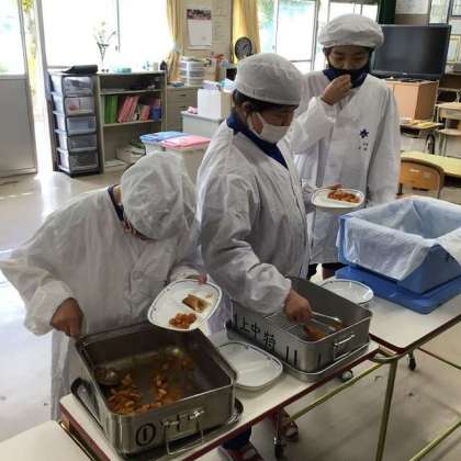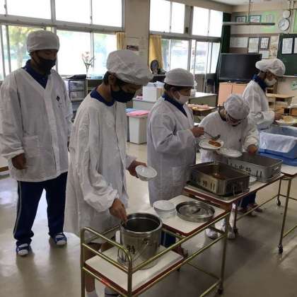 今日は少ない人数での給食でした 〜今日の給食 1・2学級その1〜