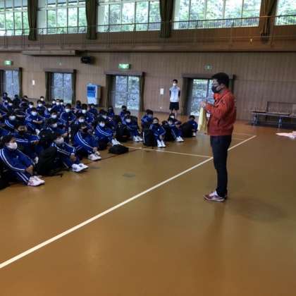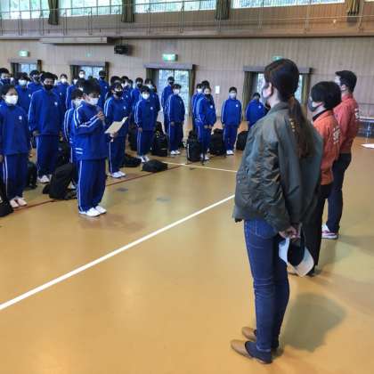 所長さんからお話を聞き、代表生徒が司会の言葉を述べました。